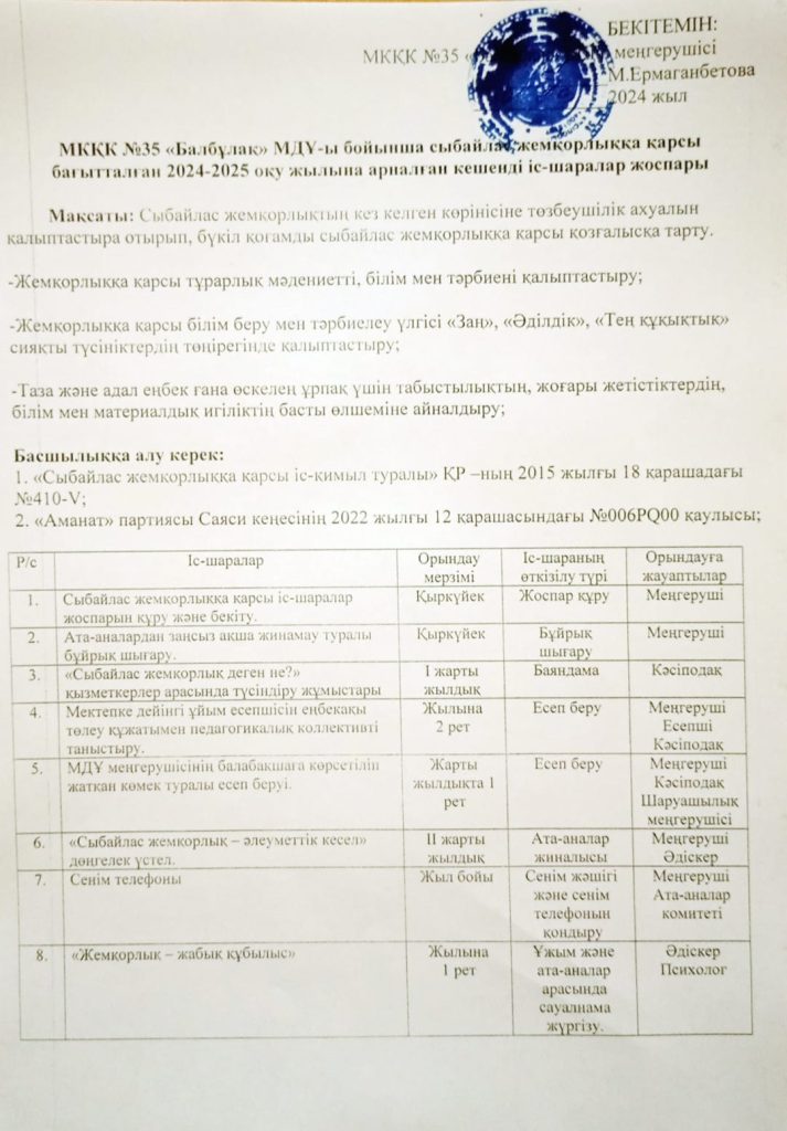 2024-2025 оқу жоспары